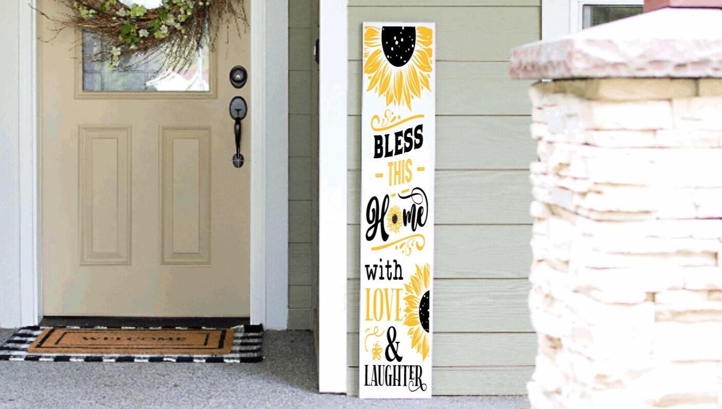 Customize Bless This home, This home is Blessed Porch Leaner 4ft 5ft 6ft Porch Decor Customize Porch Sign Sunflower Decor | Welcome Sign