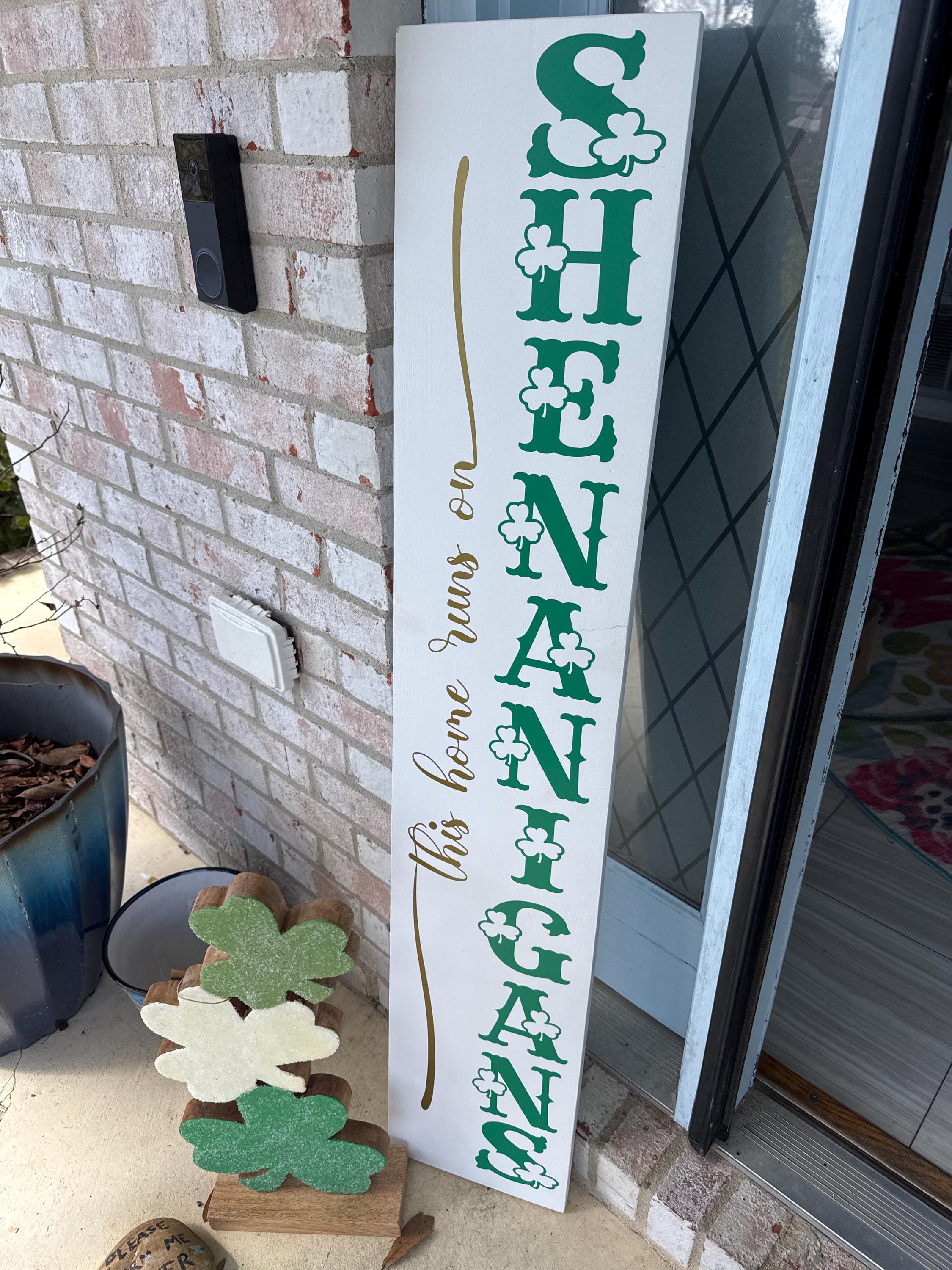 St Patrick's Day Welcome Porch Sign: Shenanigans Decor Porch Leaner